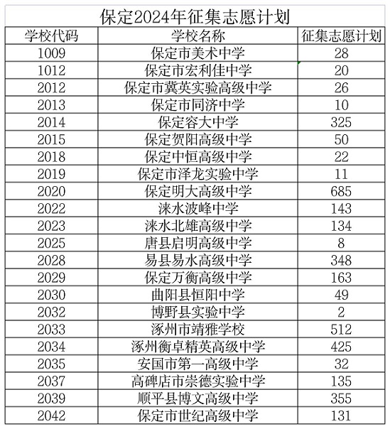 根據(jù)《保定市招生委員會(huì)關(guān)于印發(fā)<2024年保定市高中階段學(xué)校錄取工作方案>的通知》(保招委〔2024〕10號(hào))文件精神,按照工作安排,第二批次B段錄取結(jié)束后,進(jìn)行志愿征集,具體事宜如下: